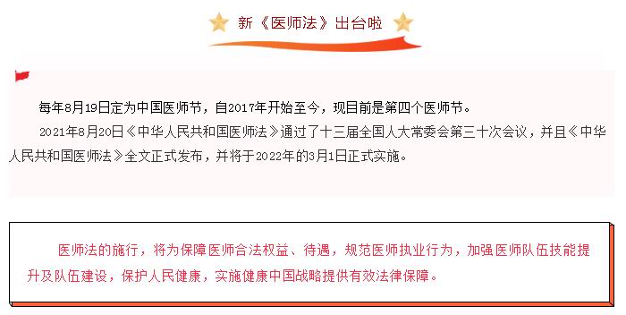 《醫師法》的通過(guò)既意味著(zhù)全國人民健康安全權益有了一定的保障,同時(shí)也保護了醫師的權益。推進(jìn)建設健康中國,保障人民健康生命周期,醫師隊伍是非常重要的。(注:法律條款內容源自網(wǎng)絡(luò ),侵刪)