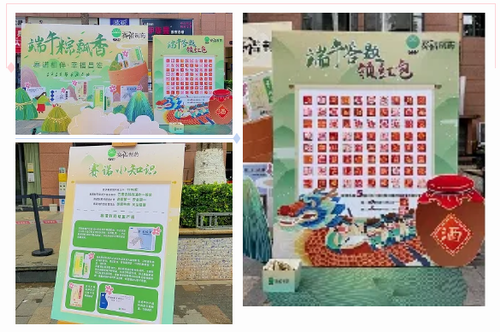 大家一聽(tīng)“釣粽子”,都覺(jué)得很新奇,興趣高漲、躍躍欲試。此環(huán)節需要在規定區域進(jìn)行粽子垂釣,大家眼疾手快,1分鐘幾個(gè)粽子就釣到手了,粽子供不應求,人們手里拎著(zhù)一個(gè)個(gè)粽子禮盒,現場(chǎng)氣氛融洽,滿(mǎn)載而歸。